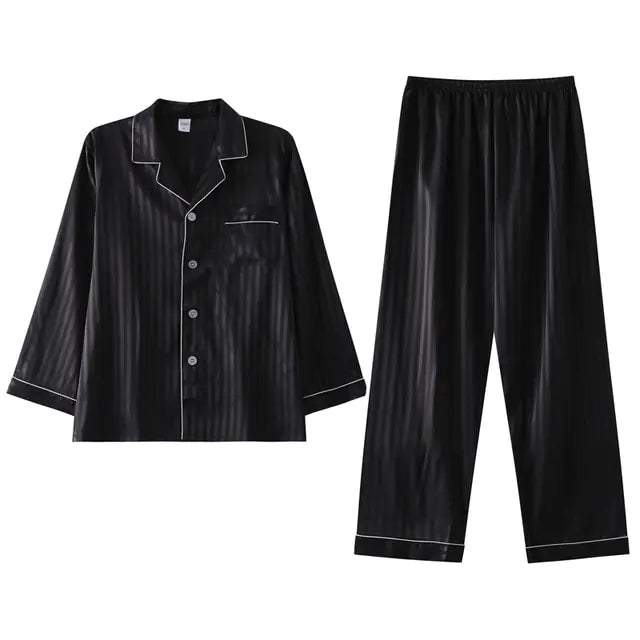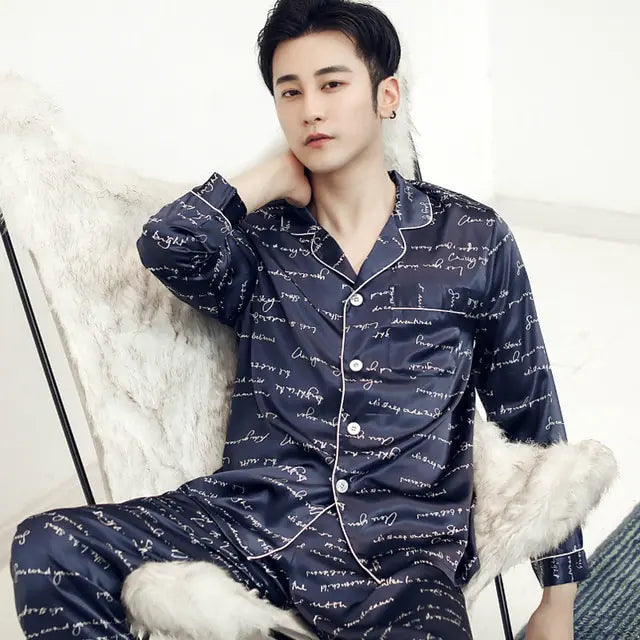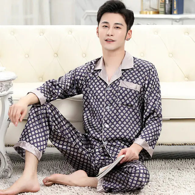 Elevate your loungewear game with our Men's Designer Ice Silk Pajama Set – because every moment of relaxation deserves a touch of luxury.