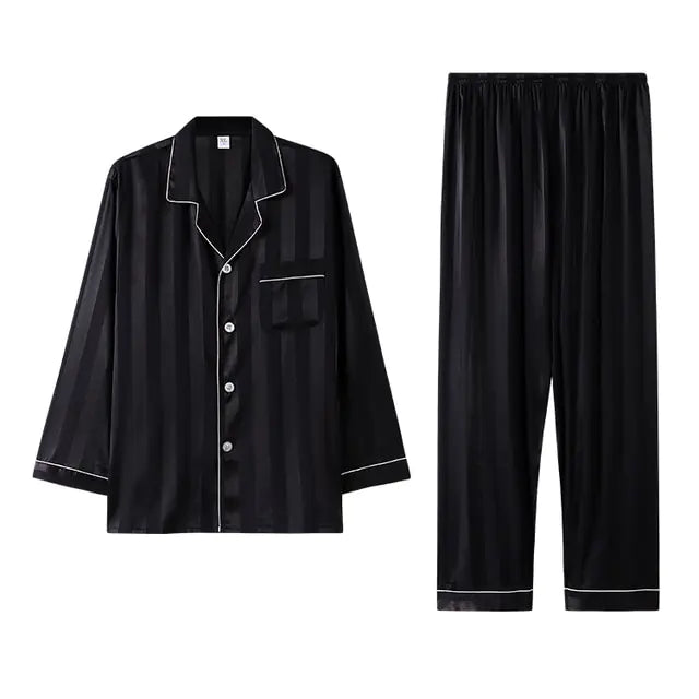 More than just sleepwear, our Designer Ice Silk Pajama Set for men is a testament to nighttime elegance. Crafted with exquisite attention to detail, it's tailored to perfection for the modern gentleman who values both refinement and ease.