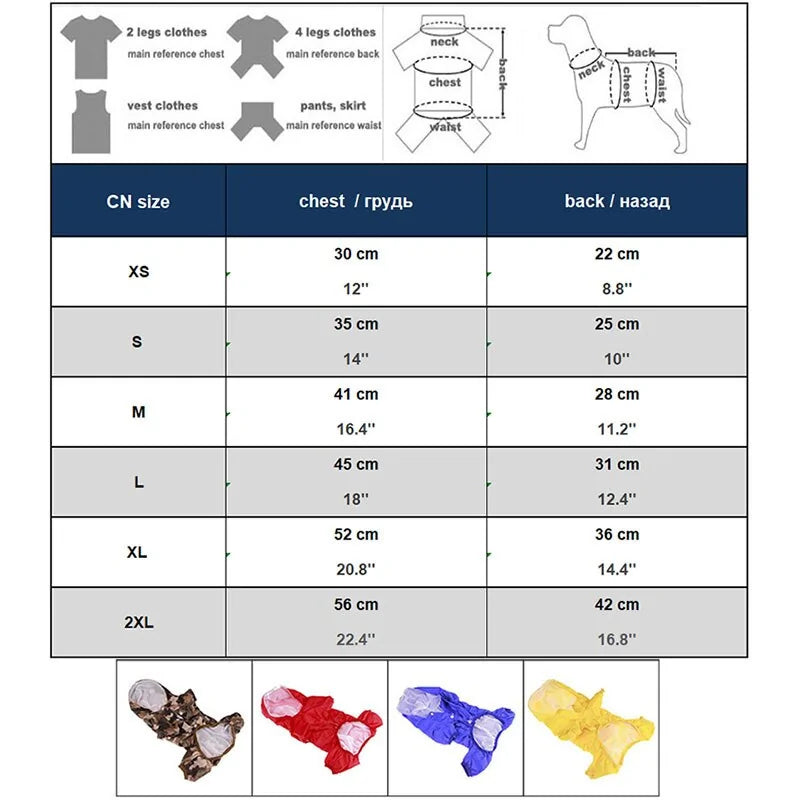 Find the perfect fit with a range of sizes from XS to XL, accommodating small to large dog breeds. Whether you have a tiny Chihuahua or a majestic Labrador, there's a Dog Raincoat to suit every canine companion.